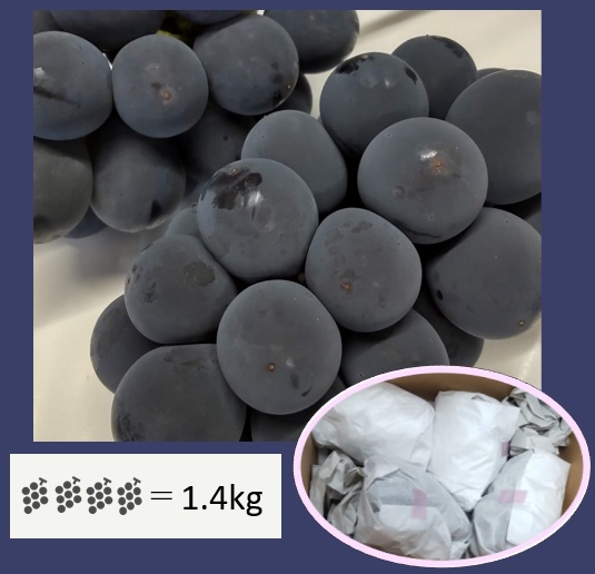 ぶどうは衝撃に弱い果物です。とれたてのぶどうを注意して梱包しておりますが熟したぶどうはどうしても粒が軸からはずれやすくなっております。数粒の外れはご容赦ください。